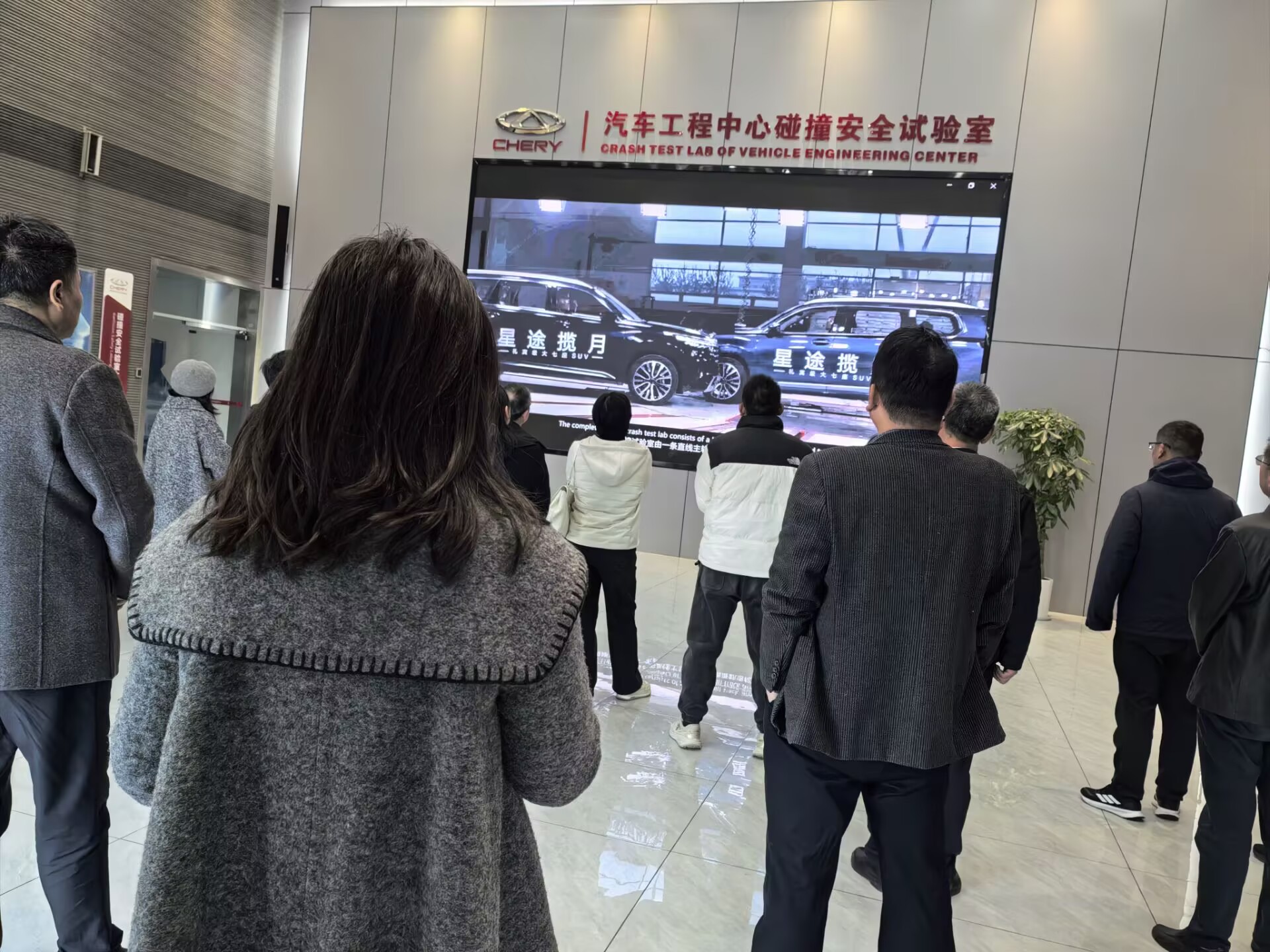 在奇瑞智造一工厂总装车间,党支部书记们近距离观摩了智能化生产线的高效运转,包括机械臂精准装配、自动化检测系统等先进制造流程。随后,大家参观了奇瑞汽车工程中心碰撞安全试验室,深入了解车辆安全防护技术与人工智能预警系统的研发应用情况。